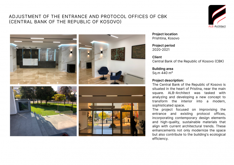 Adjustment of the Entrance and Protocol Offices of Central Bank, Republic of Kosovo